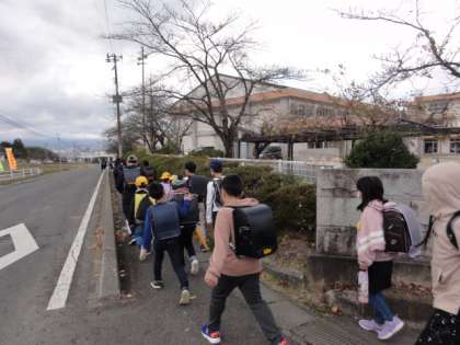 今日は、「郡山市立高瀬小中学校区コミュニティ・スクール説明会」があったため集団下校でした。