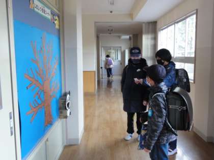 事務室前掲示板に「大きな木」が出現しました。さて、何が始まるのでしょうか。