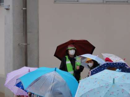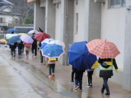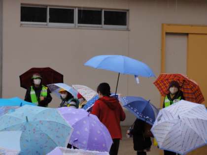 朝の強い風は止みましたが、あいにくの雨降りとなりました。子ども安全見守り隊の皆様には、雨の日も風の日もお世話になっております。皆様のお陰で子どもたちは、安心安全に下校できます。
