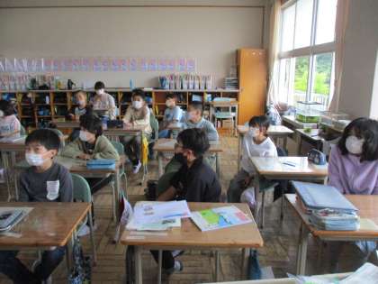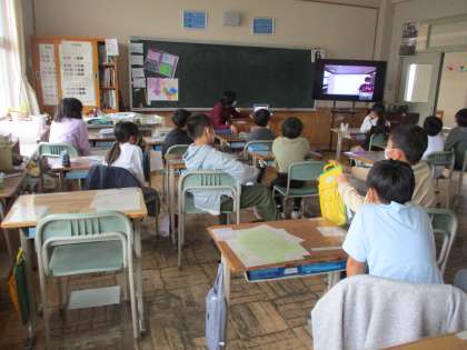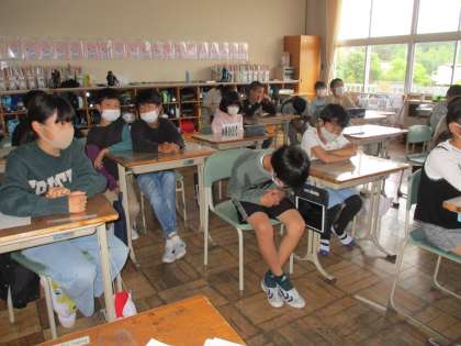 中学校とのZoom会議、5年1組の様子
