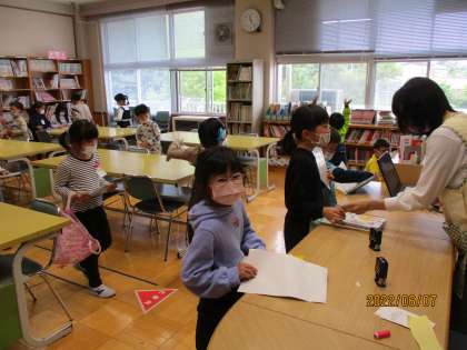 1、2年生が本を借りに来ました。その2