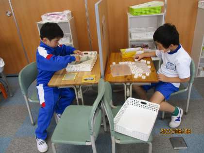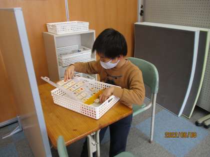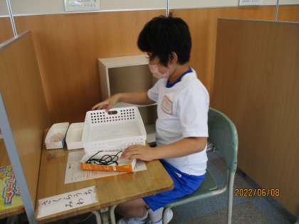 あおぞら学級へ行くと子どもたちが自立活動に取り組んでいました。