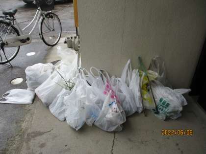 金屋1でも、雨の中、ごみ拾いを中学生と協力して行いました。ゴミも多く集めました。