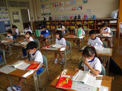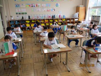 1年1組では、国語の時間にひらがなの勉強をしました。