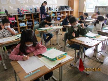 2年1組では、国語の時間に観察したことを文字で書き表しました。