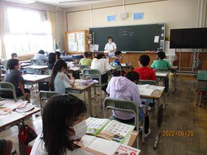 5年2組では、外国語の時間に単語練習に取り組みました。