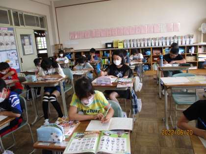 子どもたちは、集中して単語を書いていました。大変立派な態度でした。