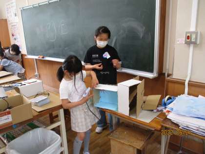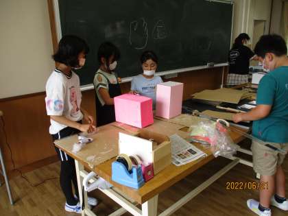 先生の助言を聞きながら、作業を進めていました。子どもたちは、みんな楽しそうに活動を進めていました。好きなことを行っているときの表情は、とてもよいですね。