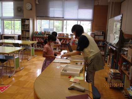 2年2組では、内科健診が終わった後に図書室に行って、本を読んだり、本を借りたりしました。