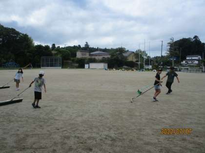 今朝も体育委員の子どもたちは、校庭をブラシでならしてくれました。