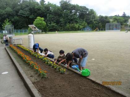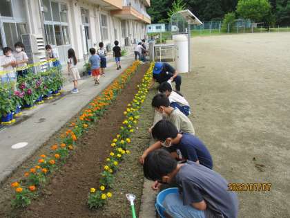 美化委員の子どもたちは、用務員さんと一緒に花壇の草むしりをしてくれました。