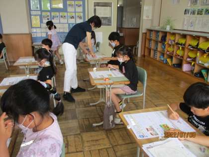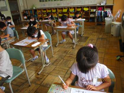 子どもたちは、指を使ったり、頭の中で考えたりと一生懸命テストに取り組んでいました。