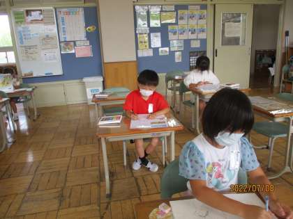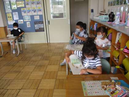 子どもたちは、早く終わった順からお絵かきをしたり、読書をしたりしていました。