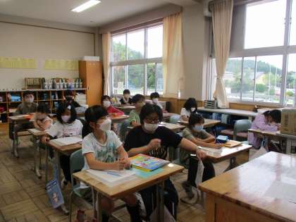 3年1組では、外国語活動の時間にアルファベットを書きました。