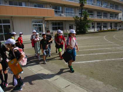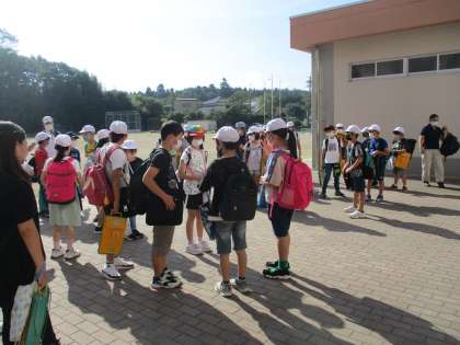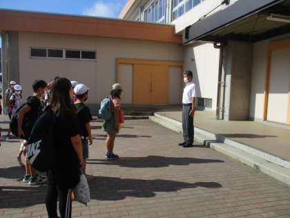 4年生代表児童の「行って来ます」のあいさつの後、校長より「ルールを守り、常識ある行動をとって、思いやりをもって活動してくるように」との話をしました。