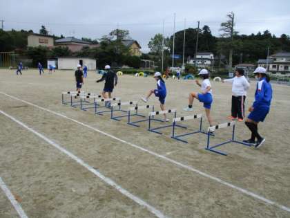 ハードル競技も練習をがんばっています。