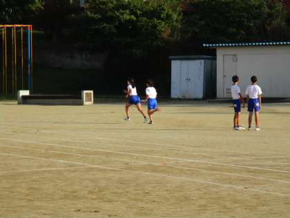バトンの受け渡しが鍵となります。友達との息を合わせながら、一生懸命練習していました。