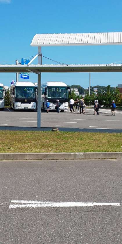 みんながバスに乗りました。これからいわき海浜自然の家に向けて出発します。