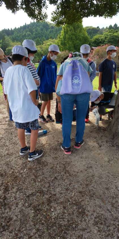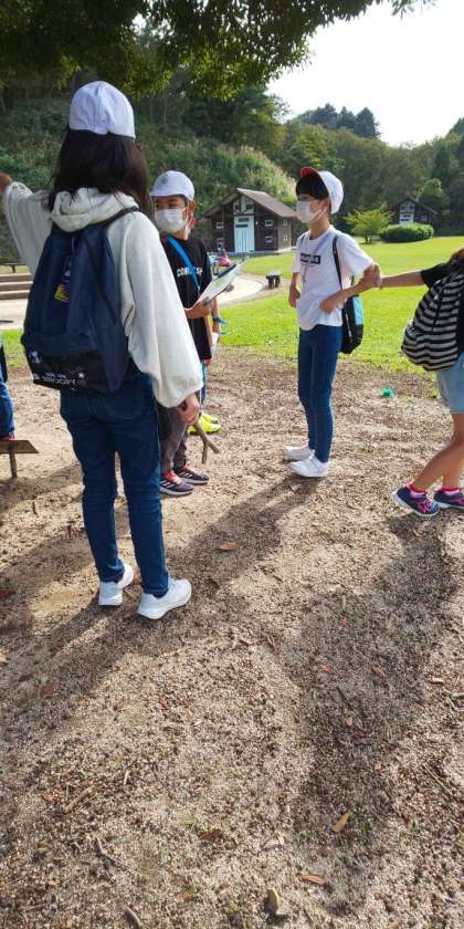 班で協力しながら、海浜オリエンテーリングを一生懸命行っています。