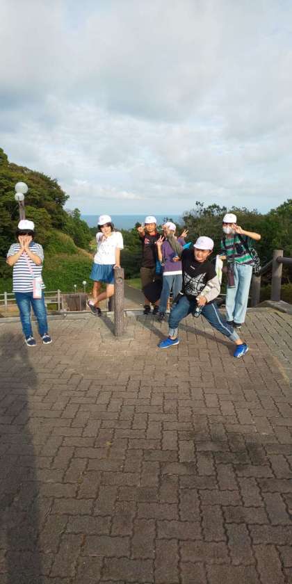 海浜オリエンテーリングも残り10分です。 海をバックに記念撮影をしました。