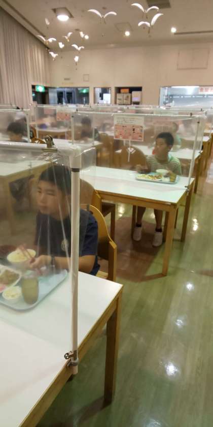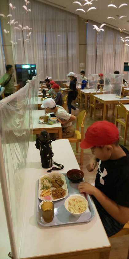 今日のメニューは、トンカツ、はるさめ、焼きそば、ポテト、ご飯、スープなどでした。子どもたちは、満足そうに食べていました。