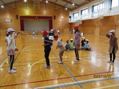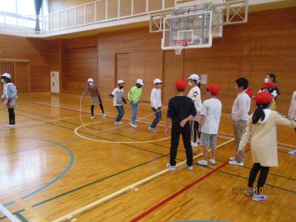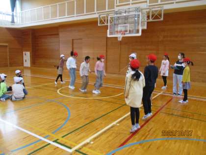 学級の仲間で楽しく過ごすことをしようということで、体育館で大縄跳びをして楽しく活動していました。