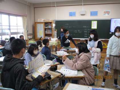 6年2組では、外国語の時間に夏休みに行ったことを紹介し合いあう学習を行いました。子どもたちは、班で紹介した後にシャフルして、いろいろな友だちに紹介をしていました。