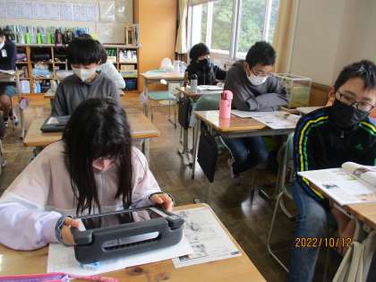 6年2組では、社会の時間に室町時代の文化についてまとめ、紹介文を作ることを行いました。子どもたちは、今まで学習したことを活かしながら紹介文づくりを行っていました。