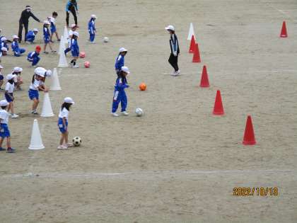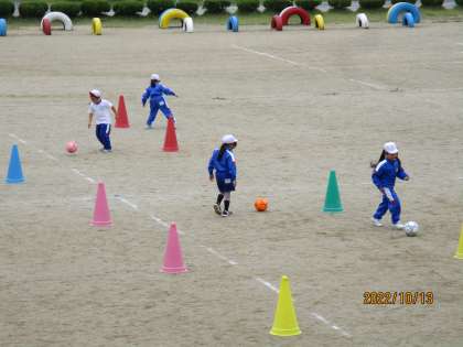 子どもたちはボールをけりながら走ることに苦労していましたが、ゲームを楽しんで行っていました。