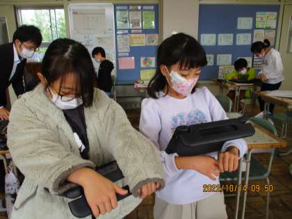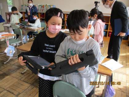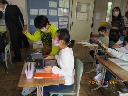 子どもたちは、本時の授業テーマにあるようにロイロノートの機能を用いて、自分が考えたことが正しいかどうかを友達と確認し合いました。