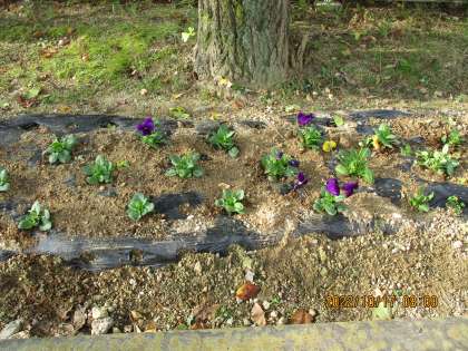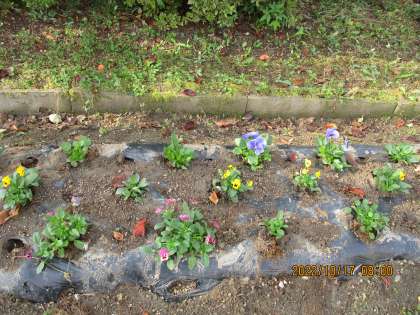 この週末に小川地区環境委員会の皆様が、学校の正門付近や駐車場付近にたくさんのパンジーとビオラ等の花の苗をたくさん(200以上)植えてくださいました。