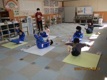 本時は、「体幹トレーニングを楽しもう」とのめあてで授業が行われました。