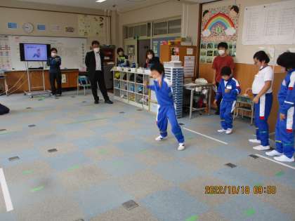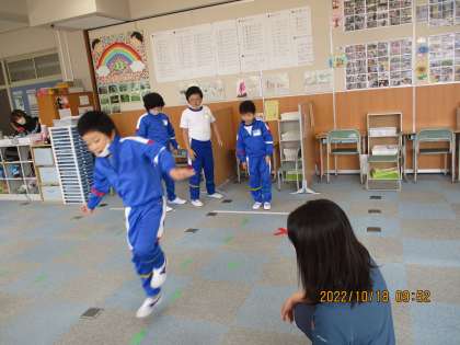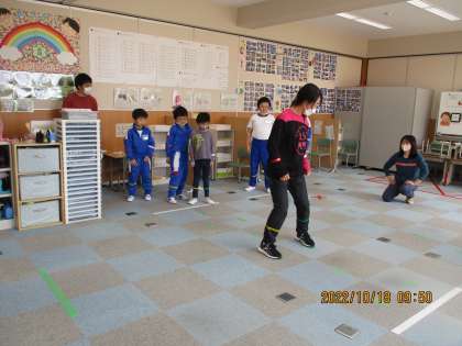 体幹を鍛えるためのポーズをした後に、ケン、ケン、パをしました。