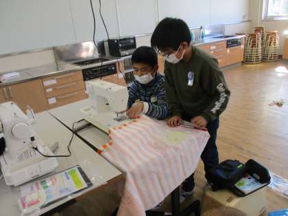 ミシンを使ってエプロンを縫いました。(5年2組)その2
