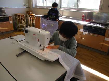 ケガをしないように集中して、ミシンを使って縫い方をしました。