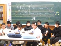子どもたちが、くぎをトントン打って作った作品を見せてくれました。