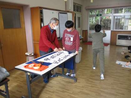 今日で上石先生からの指導は終わりになります。今年も指導していただき、子どもたちは文字を書くコツを学ぶことができました。教わったことを生かし、これからも丁寧に文字を書いてほしいと思います。