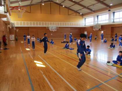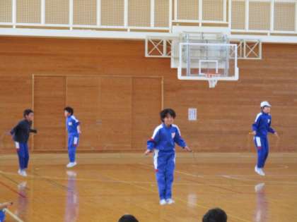 5年生のなわとび記録会が行われました。5年生の持久跳びは「5分間」。これまでの練習の成果を発揮しようと、真剣な表情で取り組んでいました。持久跳びでは、10人が最後まで跳ぶことができました。跳び終えると、大きな拍手が送られていました。