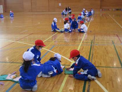 子どもたちは、前跳びや後ろ跳びにチャレンジしました。