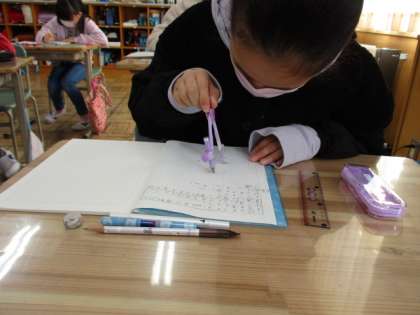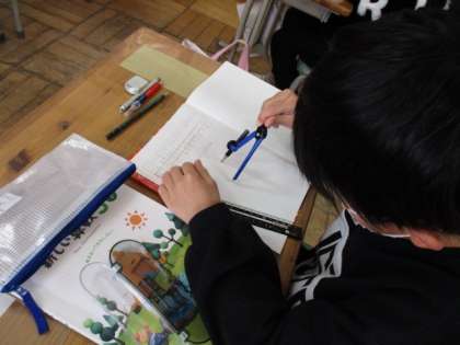 定規やコンパスを上手に使って、丁寧に書いていました。