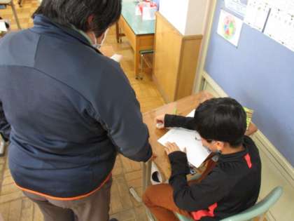 3年1組の算数の授業では、1辺の長さが4cmの正三角形を書く授業に取り組んでいました。