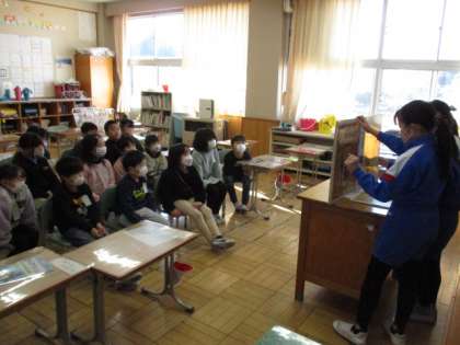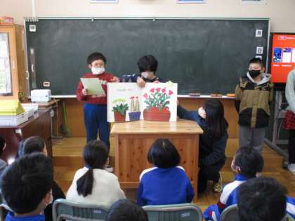 図書委員が分担ごとに分かれての活動となりました。下級生に向かって、これまで練習した成果を発揮していました。読み終えると、各学級から大きな拍手が送られていました。