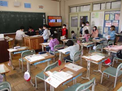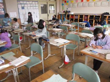 丁寧に文字を書いていました。(2年2組)