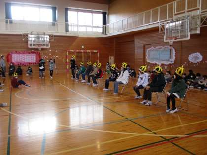 4年生とのふれあいでは、王様じゃんけんというものを行いました。6年生と4年生がじゃんけんをして、3回連続でじゃんけんを勝つと王冠がもらえるというものでした。