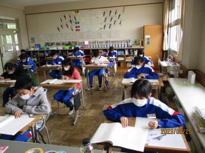 みんな真剣に学力調査に取り組んでいました。