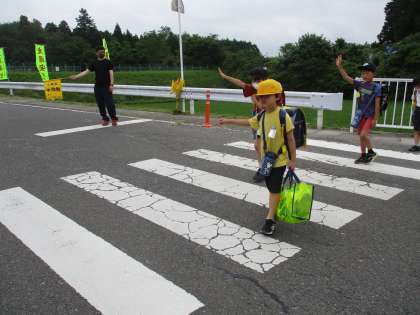 今朝は、上行合の保護者の方が、子どもたちの安全を見守ってくださいました