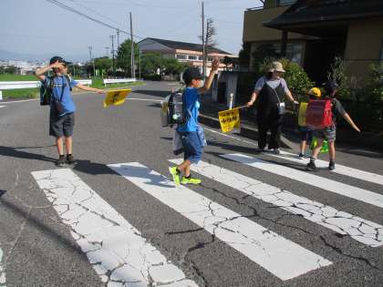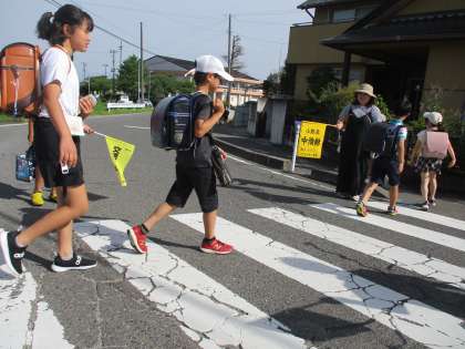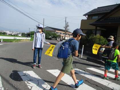今朝は、上行合の保護者の方に子どもたちの安全を見守っていただきました。