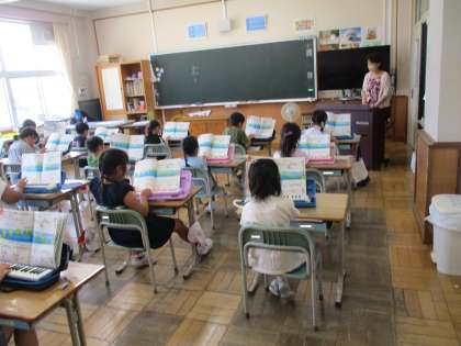 みんなで心を一つにして、先生が弾くオルガンの伴奏に合わせて、鍵盤ハーモニカで上手に演奏していました。