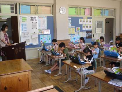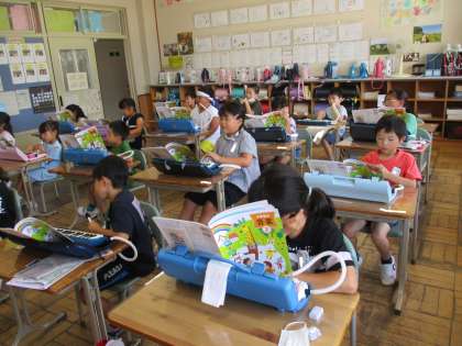 2年1組では、音楽の時間に先生の伴奏に合わせて、鍵盤ハーモニカで「カエルの歌」や「かっこう」を弾きました。