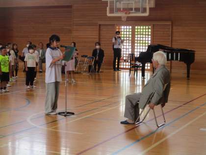 指導が終わった後に6年生の代表児童より船山隆先生にお礼の言葉を述べて、校歌披露の会が終わりました。